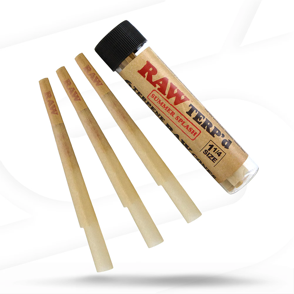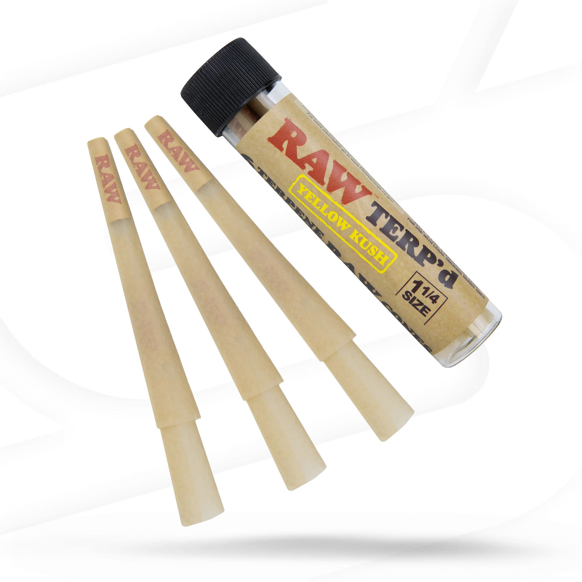 Son conos pre-enrollados de la marca RAW que están profundamente infusionados con terpenos naturales para realzar la experiencia de fumar con aromas y sabores intensificados.